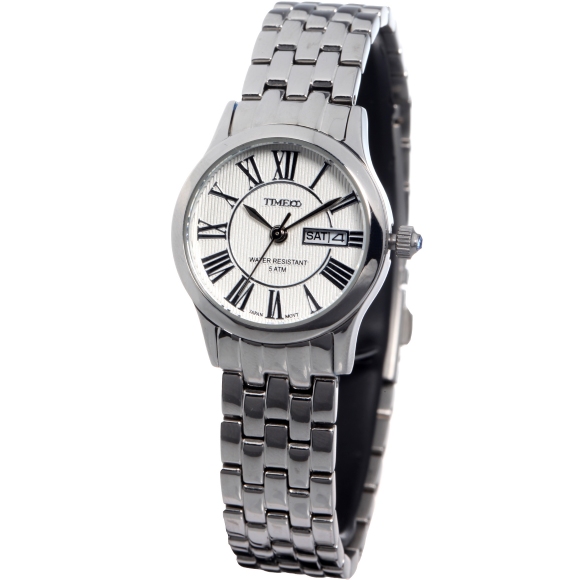 时光一百(TIME100)女表小表盘简约防水女士腕表套装女手链手表七夕礼物送女友W50888L钢色