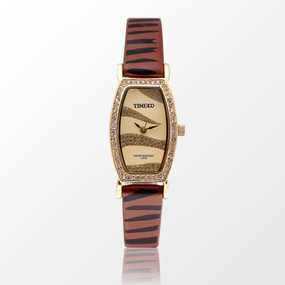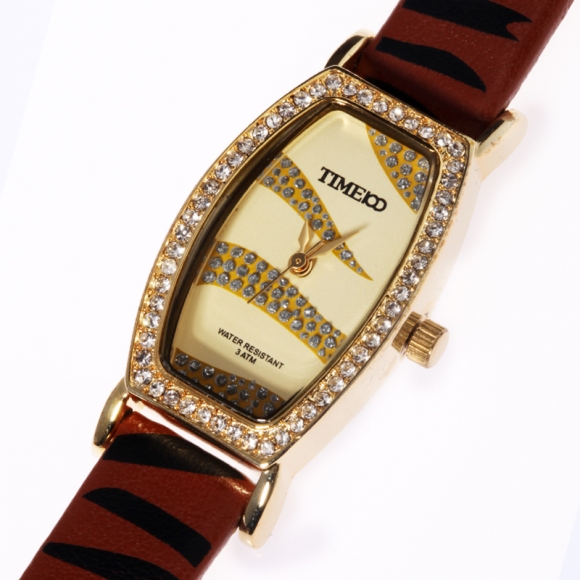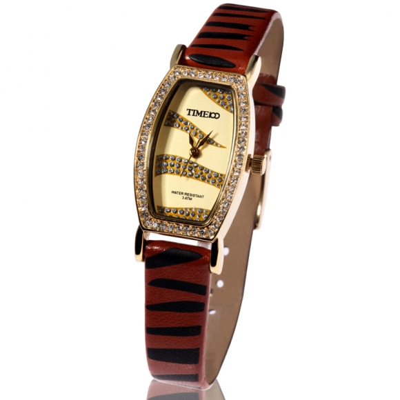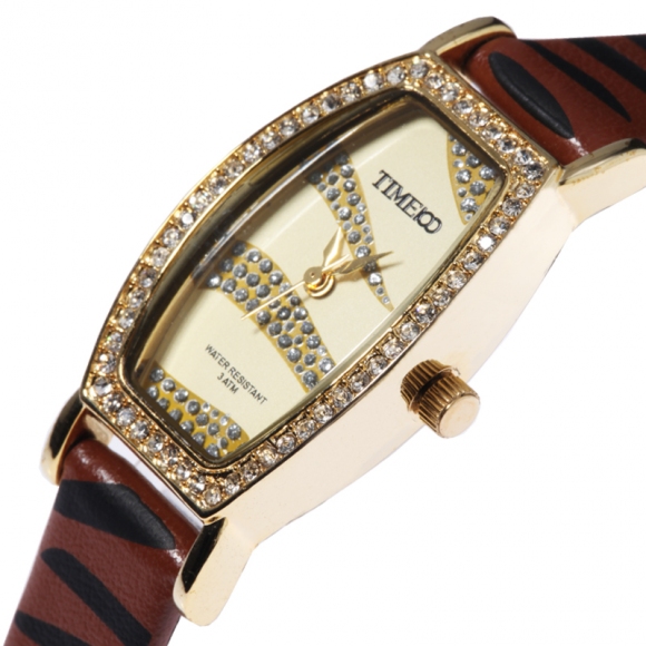 豹纹皮带镶钻闪粉面个性女表 (全国包邮)