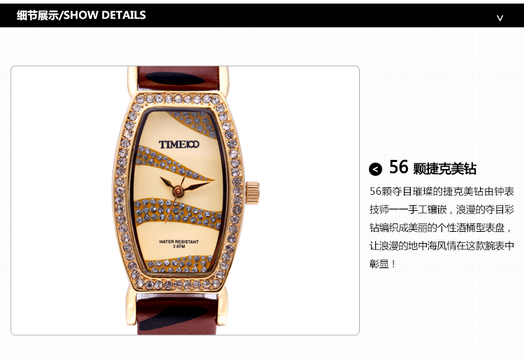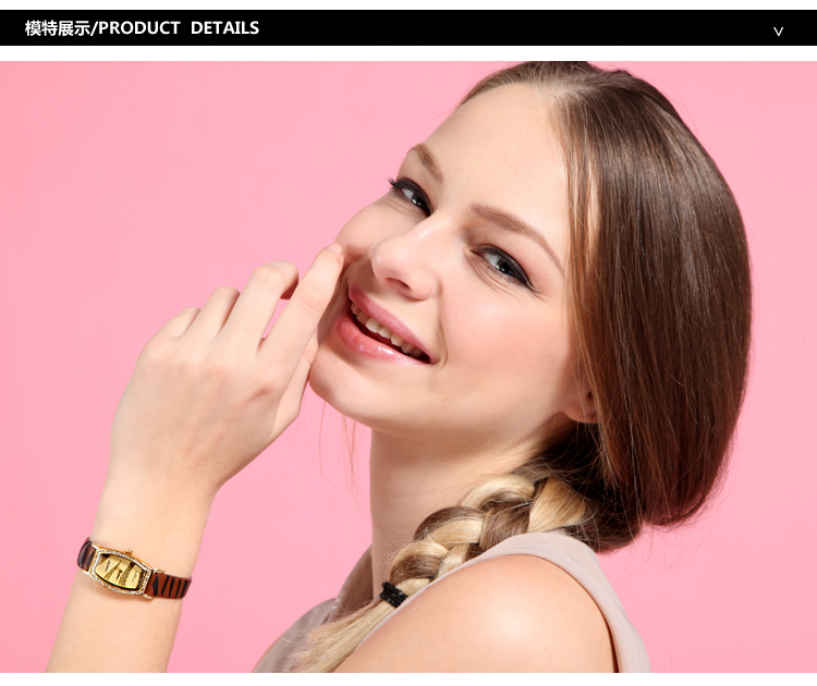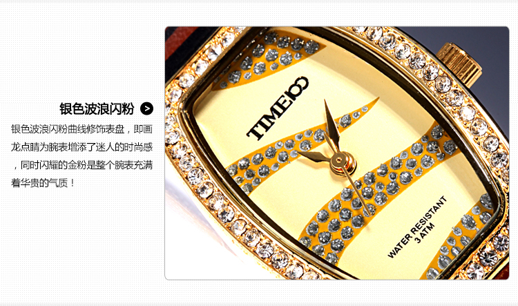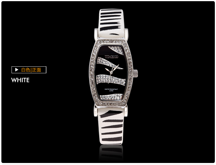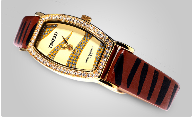 豹纹皮带镶钻闪粉面个性女表 (全国包邮)