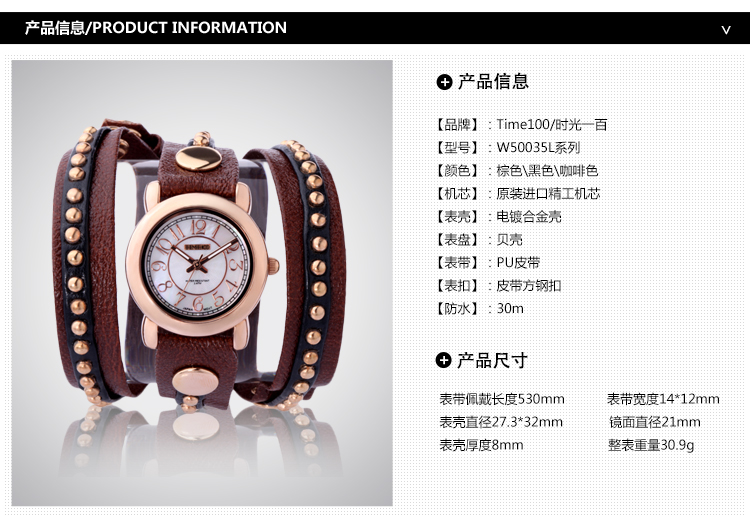 TIME100 时尚糖果色多功能真皮女表W70073L