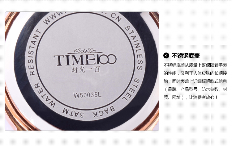 TIME100时光一百 时尚闪钻仿陶瓷石英女表 W50297L