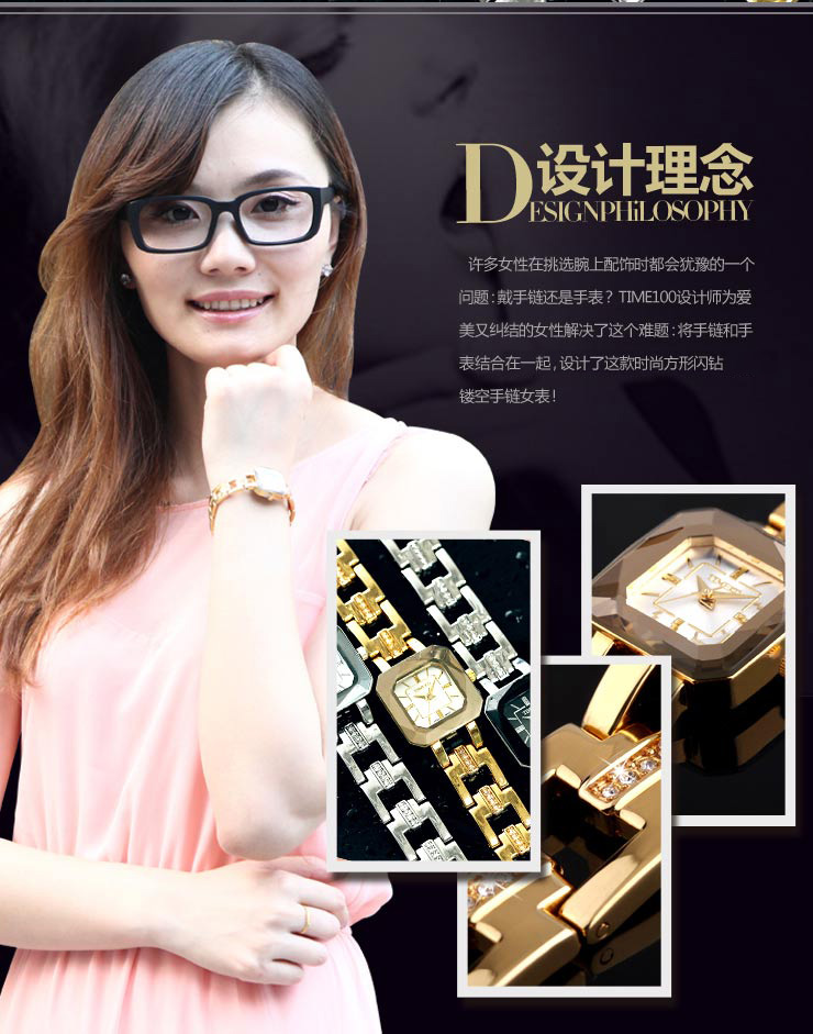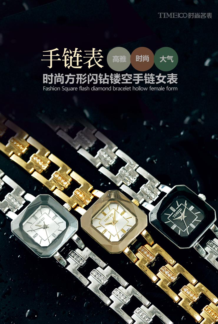 时尚椭圆形闪钻手链女表W50170L间玫瑰金