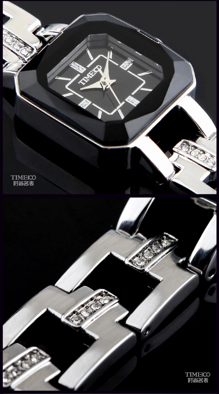 时光一百(TIME100)女表小表盘简约防水女士腕表套装女手链手表七夕礼物送女友W50888L钢色