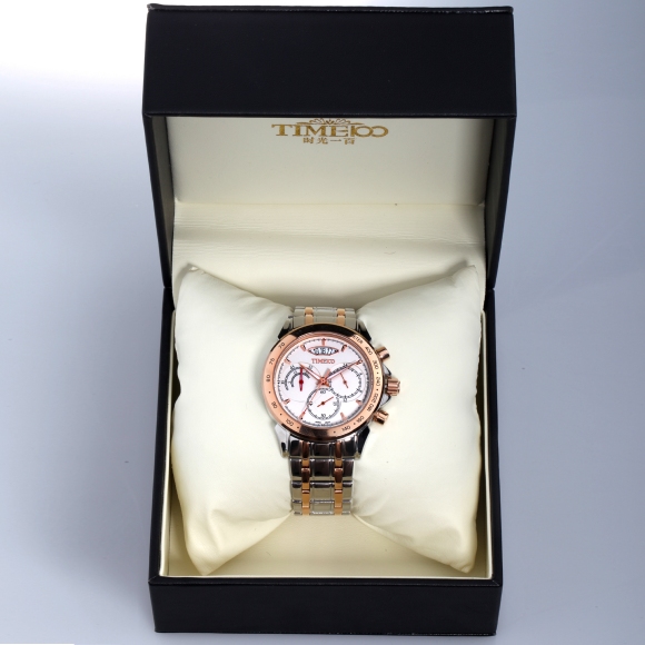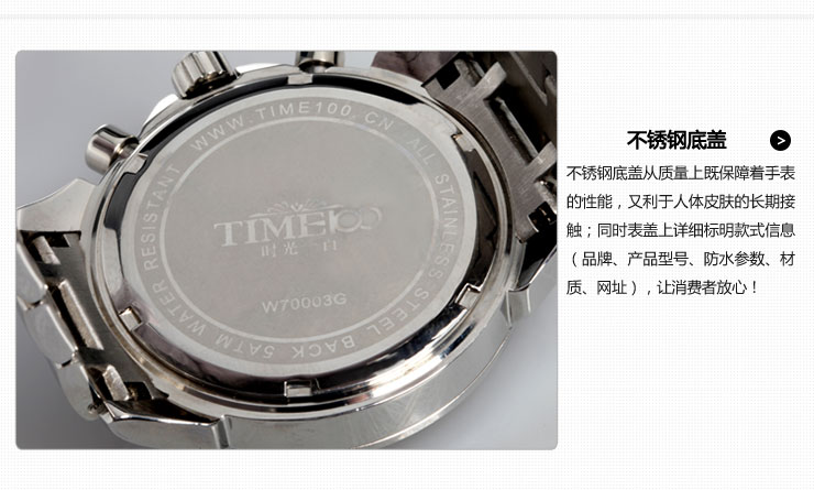 TIME100时光一百 古典罗马刻度多功能真皮石英男表W80060G