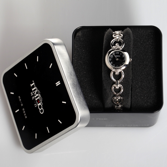 时光一百(TIME100)女表小表盘简约防水女士腕表套装女手链手表七夕礼物送女友W50888L钢色