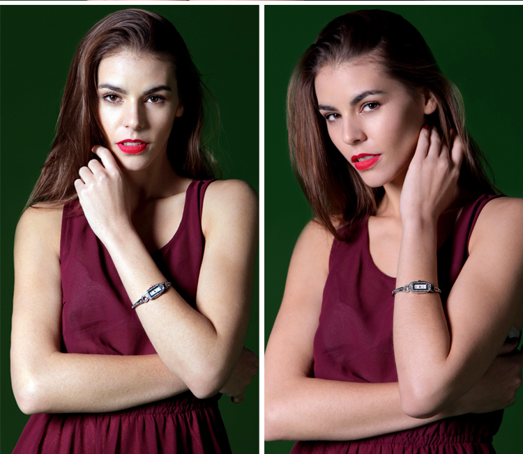 手链表轻奢小众设计ins风复古简约气质森系切面玻璃手表女W80323L绿色