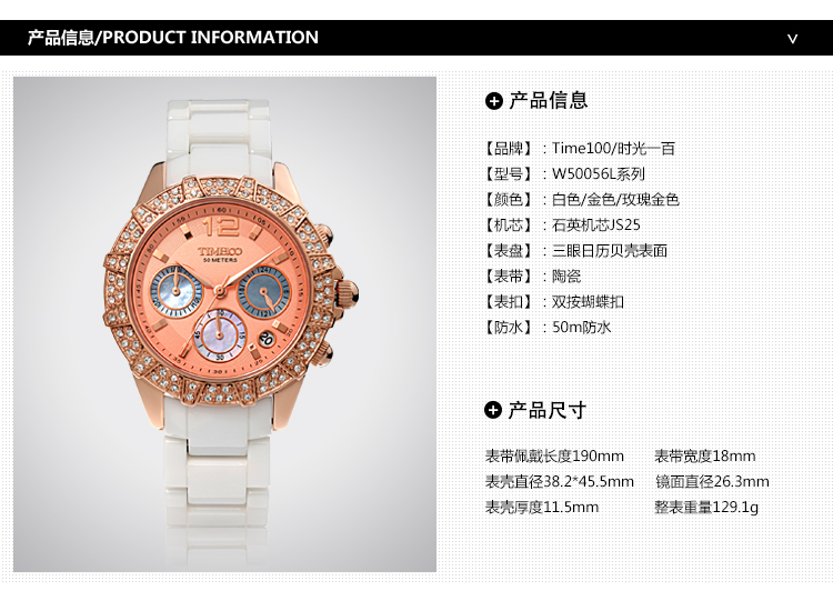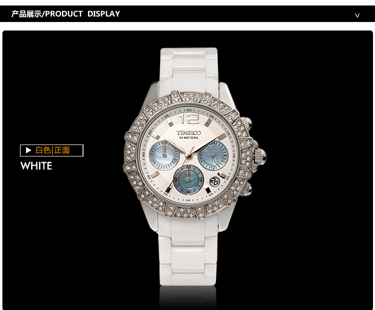 当前位置:首页 > 三眼多功能天然贝母闪钻高精密航天陶瓷女表 W50056L