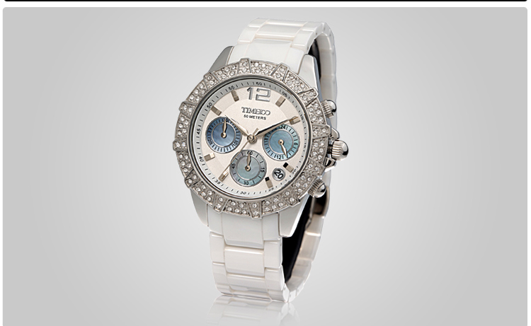 三眼多功能天然贝母闪钻高精密航天陶瓷女表 (全国包邮)