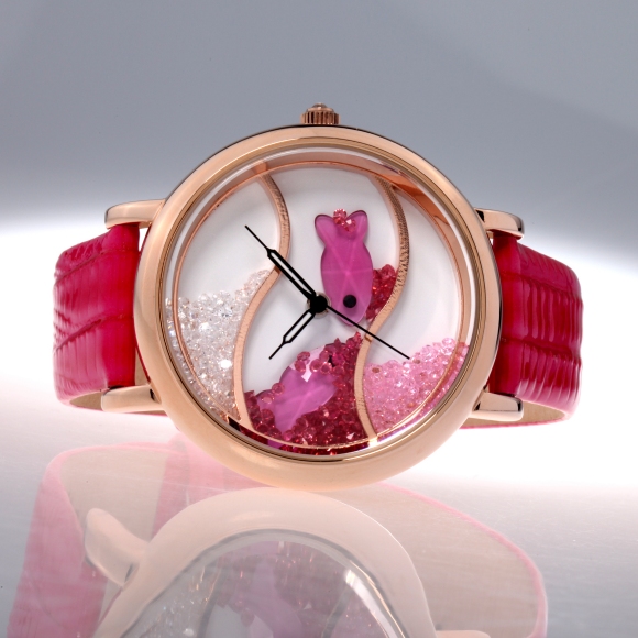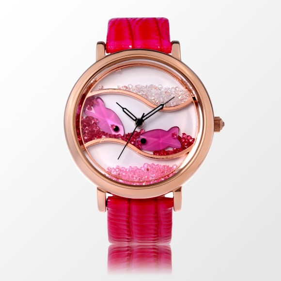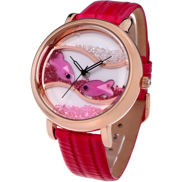 闪钻海洋水晶鱼真皮防水表 (全国包邮)