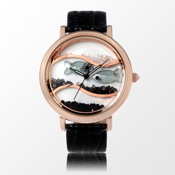 闪钻海洋水晶鱼真皮防水表 (全国包邮)