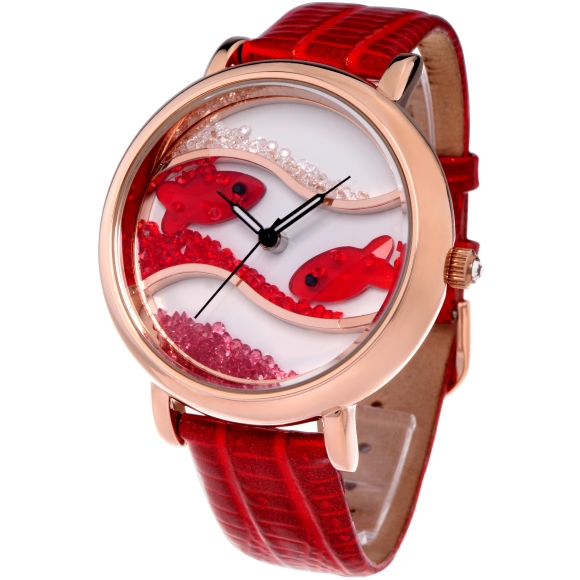 闪钻海洋水晶鱼真皮防水表 (全国包邮)