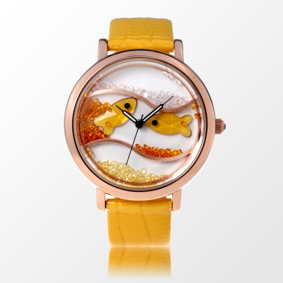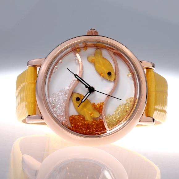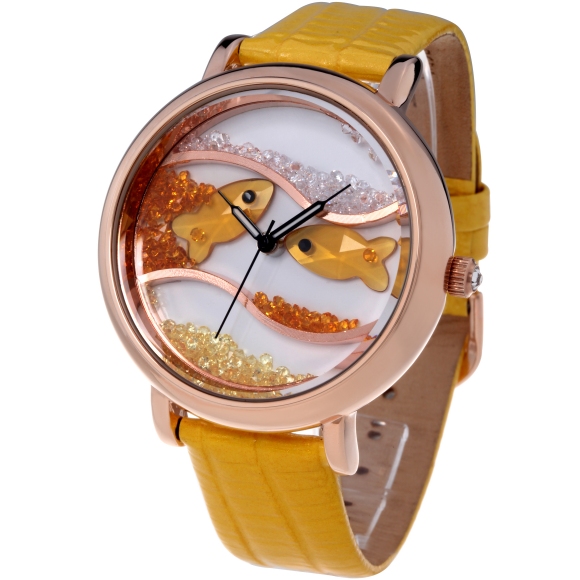 闪钻海洋水晶鱼真皮防水表 (全国包邮)