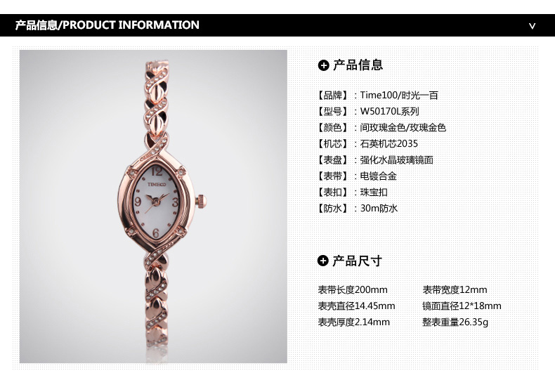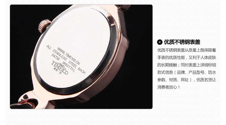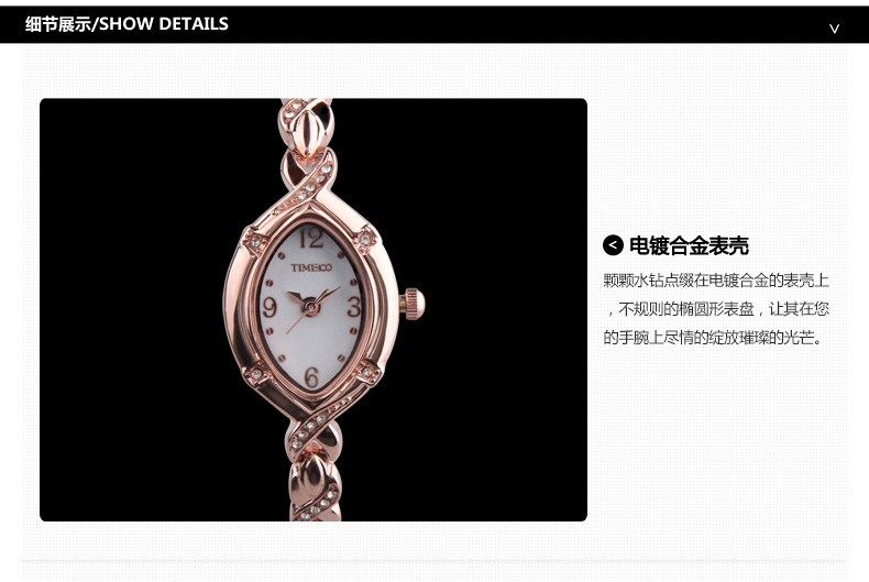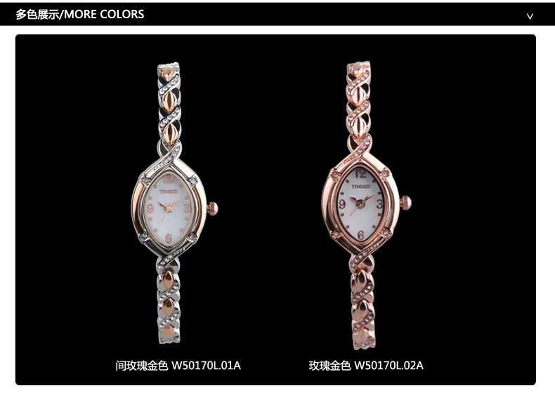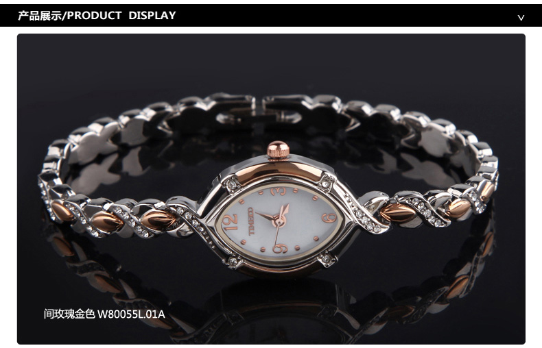 时尚椭圆形闪钻手链女表W50170L间玫瑰金