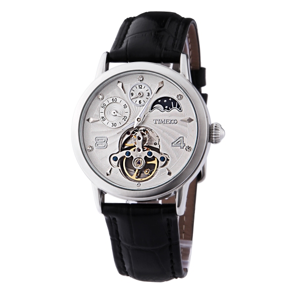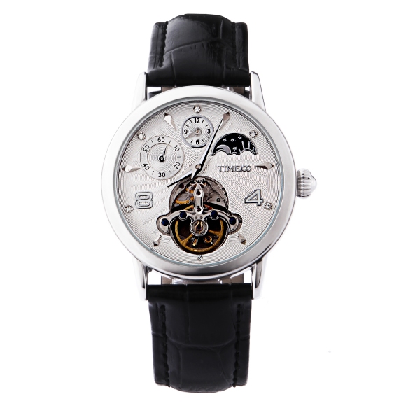 时光一百 休闲商务月相镂空机械表皮带男表W60045G