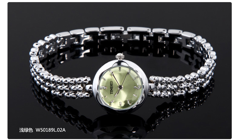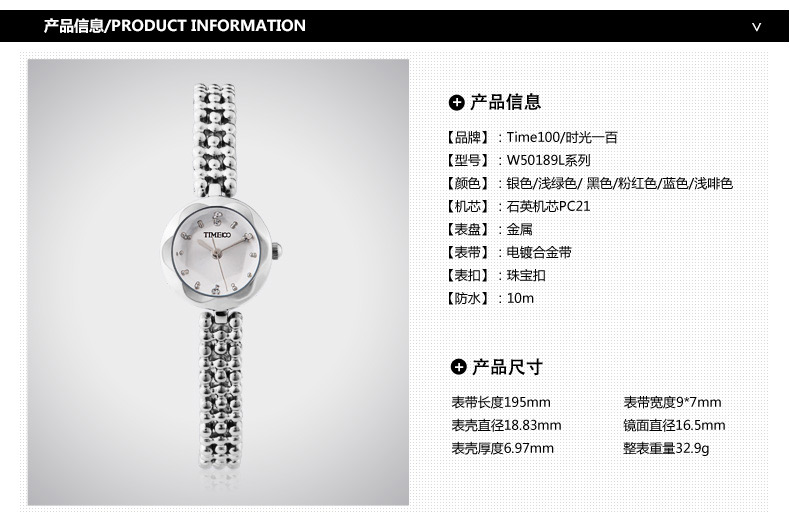 时光一百(TIME100)女表小表盘简约防水女士腕表套装女手链手表七夕礼物送女友W50888L钢色