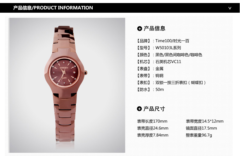 当前位置:首页 > 时尚圆形正品钨钢女士手表防水石英表W50103L