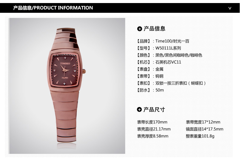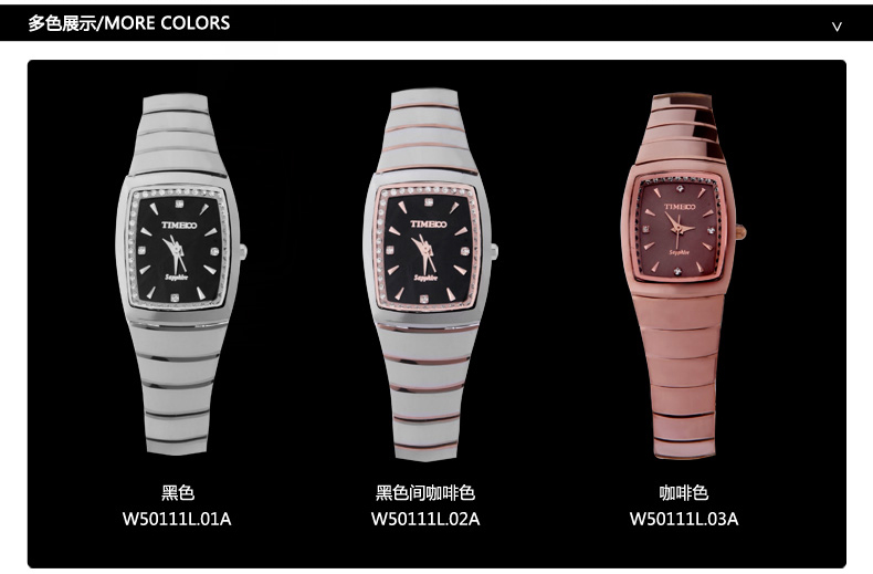 当前位置:首页 > 时尚方形正品钨钢女士手表防水石英表W50111L