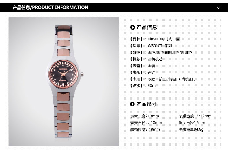 当前位置:首页 > 时尚圆形正品钨钢女士手表防水石英表W50107L