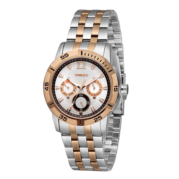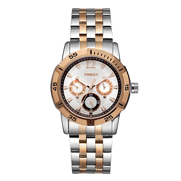 TIME100时光一百 简约复古立体水波纹日历钢带情侣男表W80070G