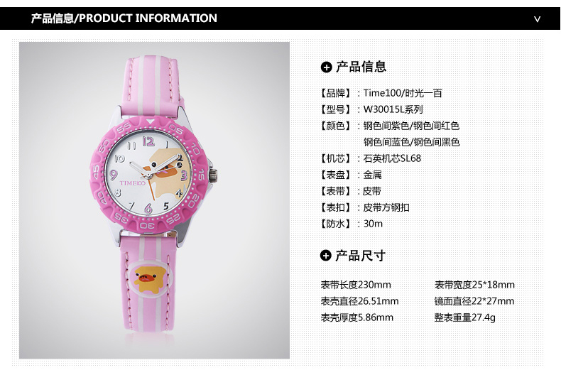 时光一百Smileyes系列 多面闪钻细皮带石英女表TSW015L