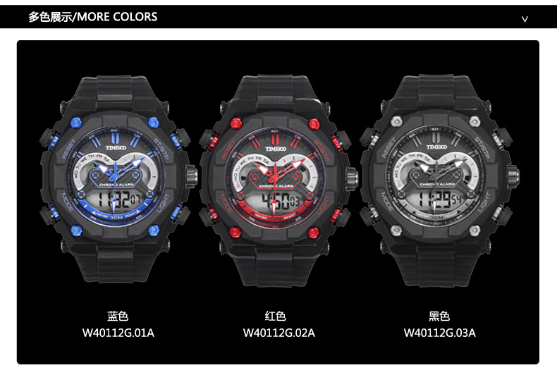 双显多功能户外运动电子表 W40112G (全国包邮)