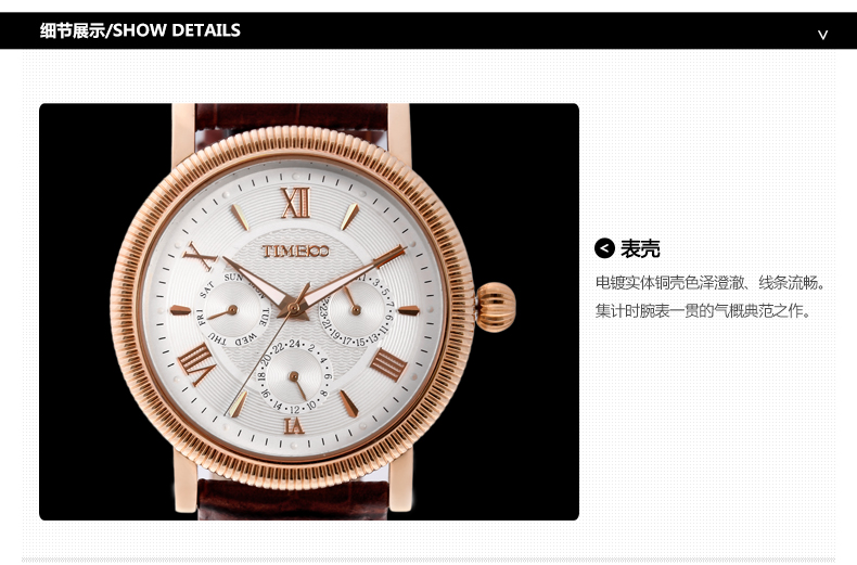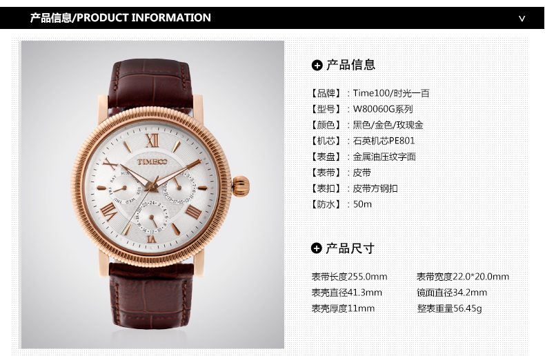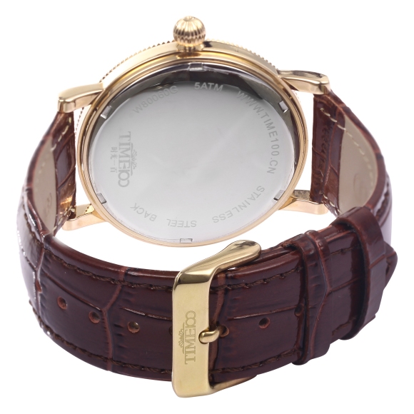 TIME100时光一百 古典罗马刻度多功能真皮石英男表 全国包邮