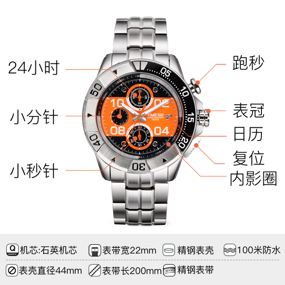 当前位置:首页 > 100米防水 时尚多功能精钢石英男表W70105G