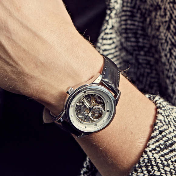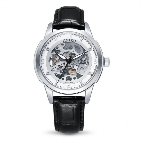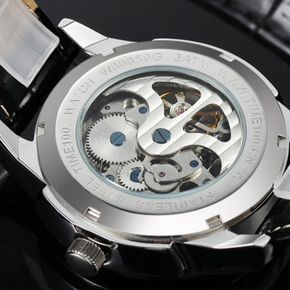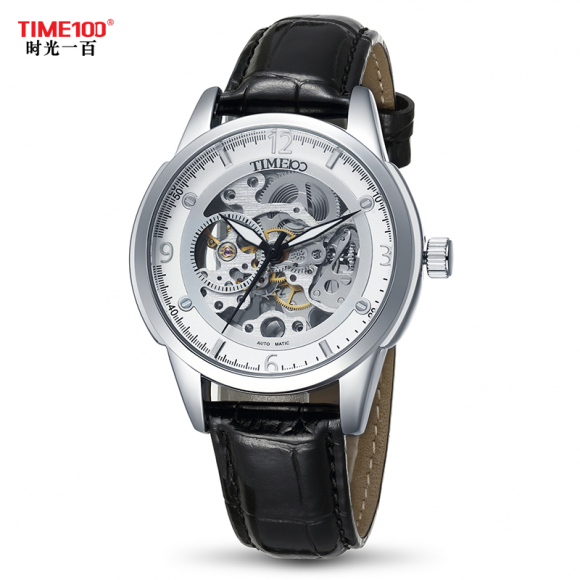 时光一百 休闲商务月相镂空机械表皮带男表W60045G