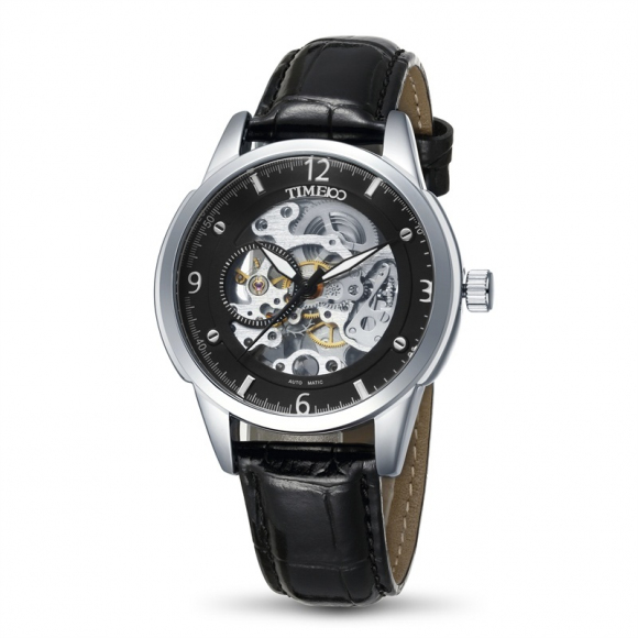 时光一百 休闲商务月相镂空机械表皮带男表W60045G