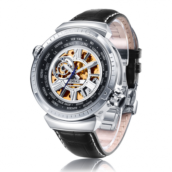 世界时区飞轮镂空机械表牛皮男表 (全国包邮)