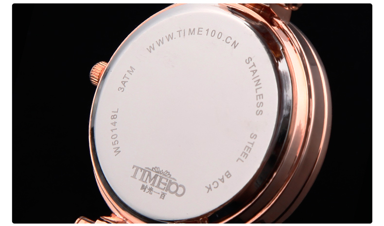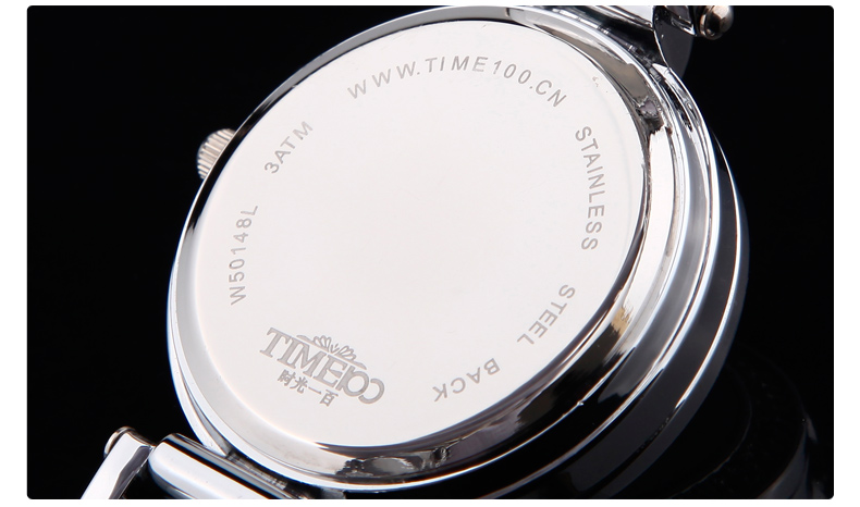 时光一百(TIME100)女表小表盘简约防水女士腕表套装女手链手表七夕礼物送女友W50888L钢色
