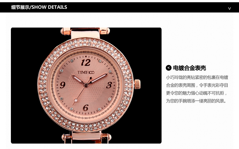 时尚椭圆形闪钻手链女表W50170L间玫瑰金