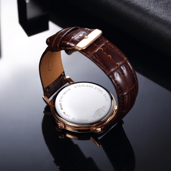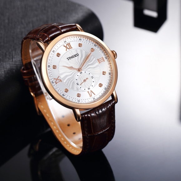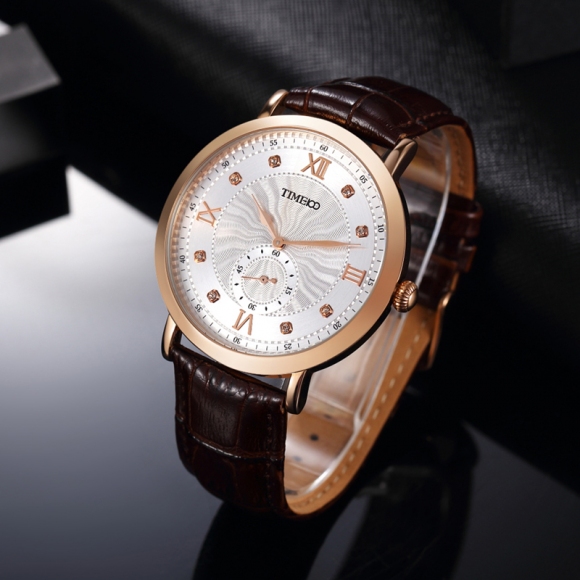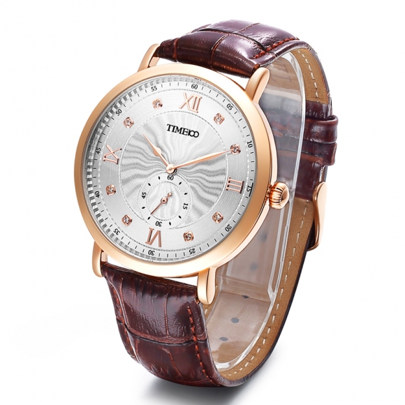 时光一百 时尚简约闪钻真皮石英男表