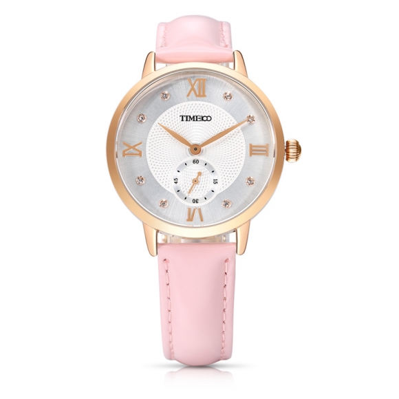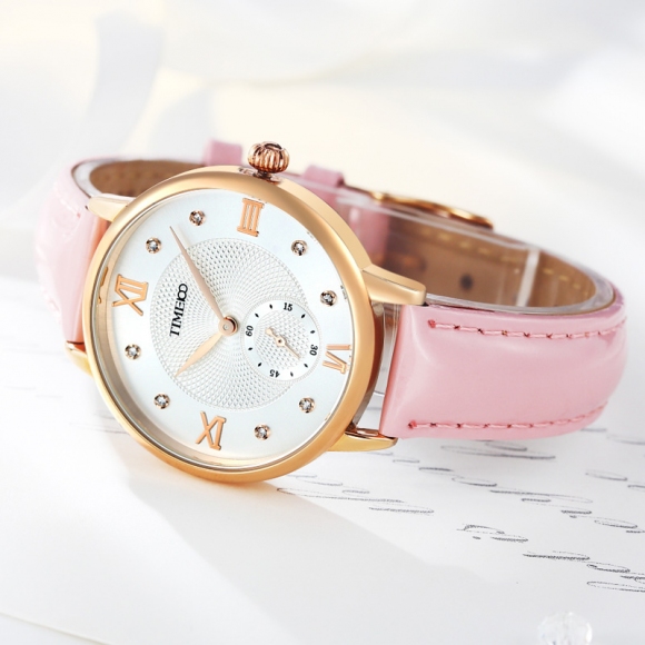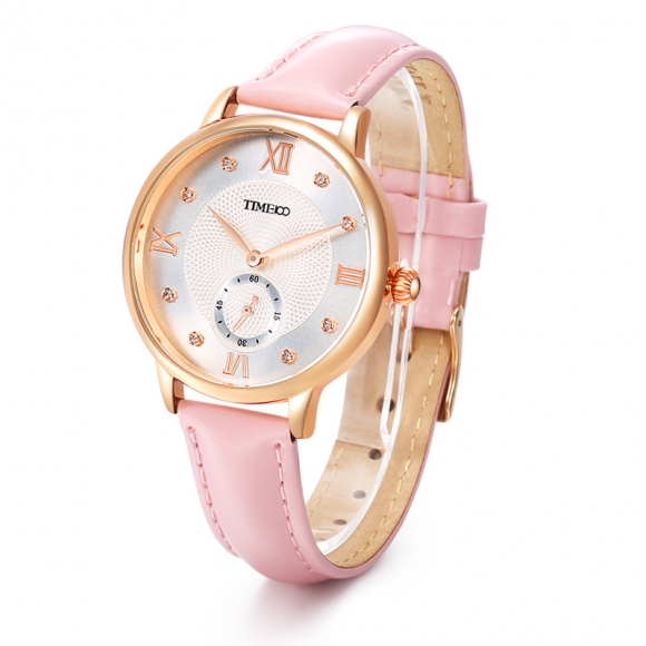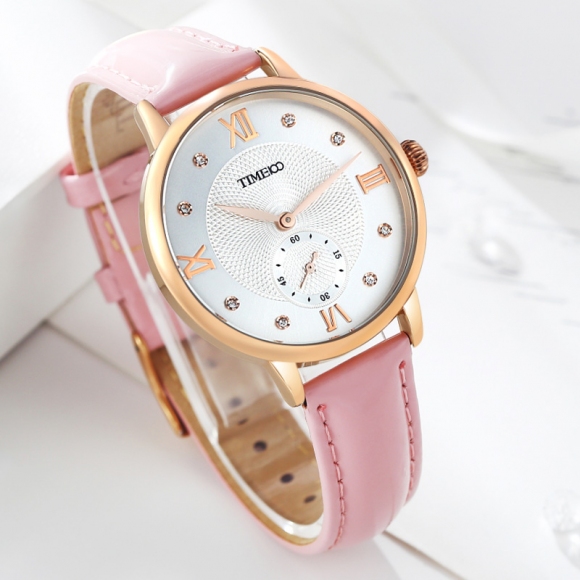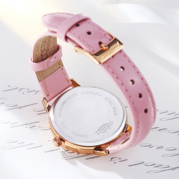 时光一百 时尚复古闪钻亮光真皮石英女表