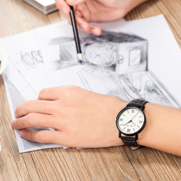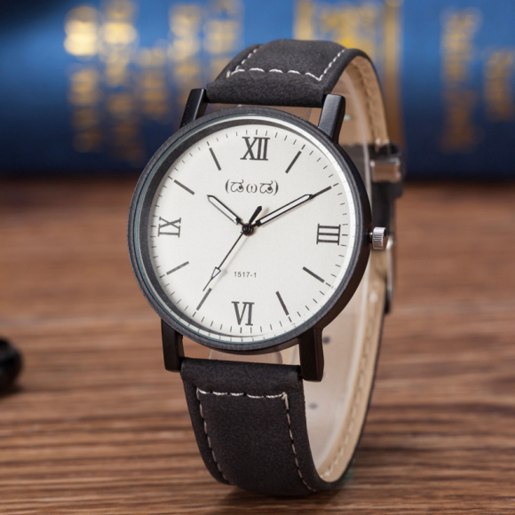 时光一百Smileyes系列 商务休闲罗马数字皮带石英男表