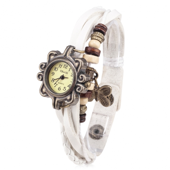 时光一百Smileyes系列 复古编织皮手链石英女表