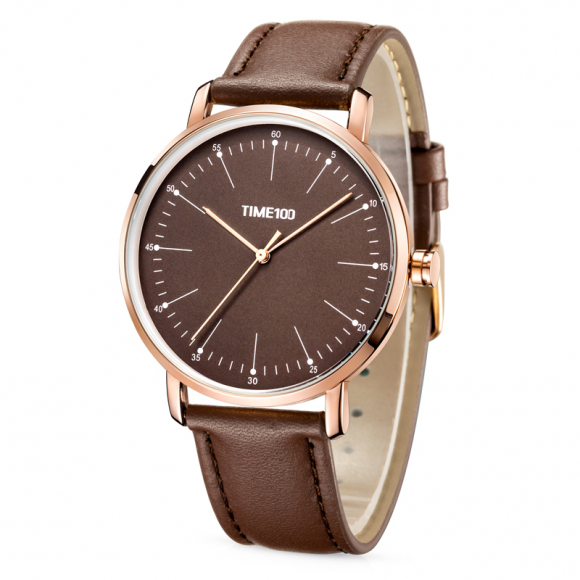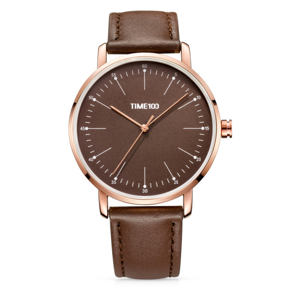 TIME100时光一百 古典罗马刻度多功能真皮石英男表W80060G