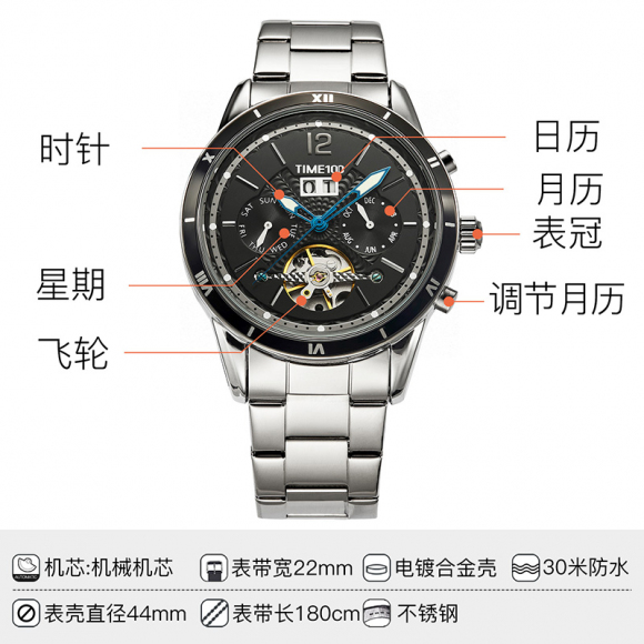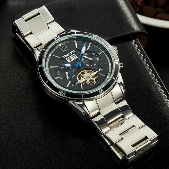 时光一百男表防水自动机械表钢带男士手表潮流休闲腕表