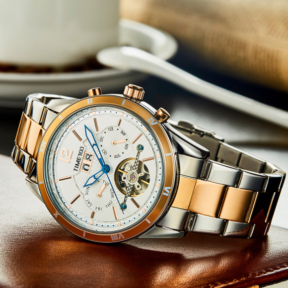 时光一百男表防水自动机械表钢带男士手表潮流休闲腕表