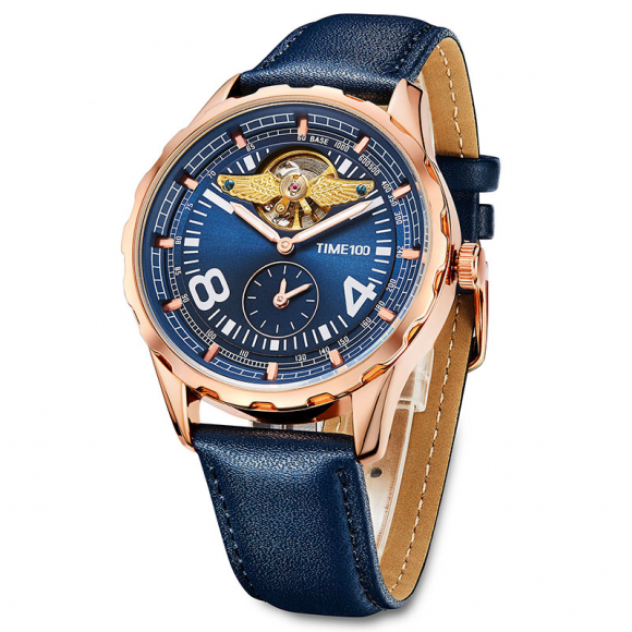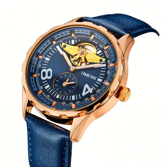 时光一百(TIME100)飞行师系列机械表天使翼商务飞轮手表多功能自动机械机芯防水男士手表