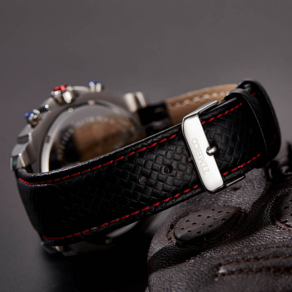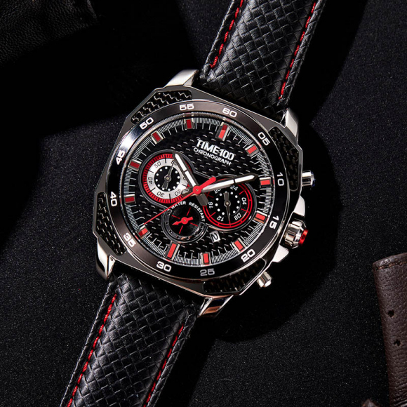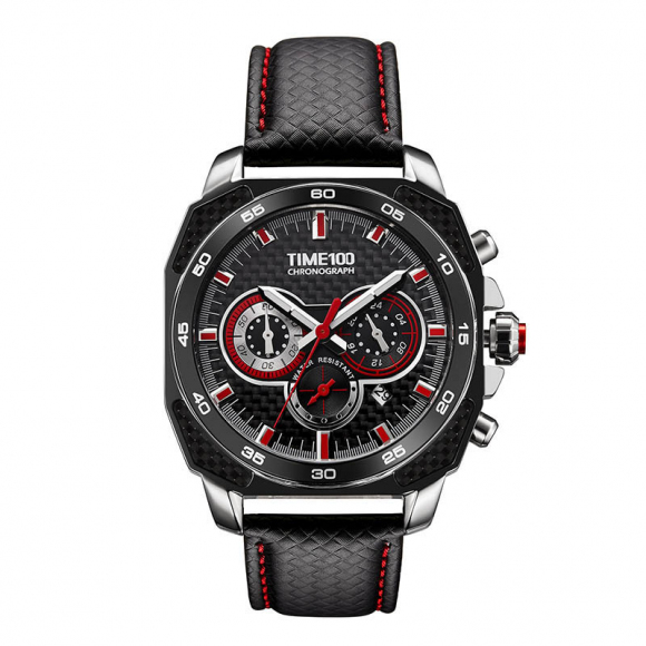 TIME100时光一百 古典罗马刻度多功能真皮石英男表W80060G