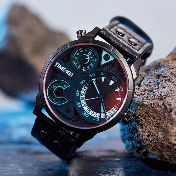 时光一百(TIME100)男表个性炫彩三芯搭配石英男士手表 新款爆款