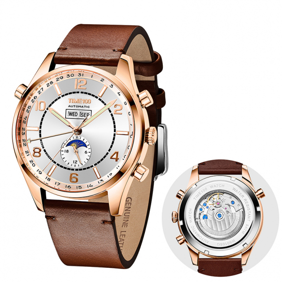 《领航》系列复古商务休闲日月星辰星期日历多功能男士机械手表