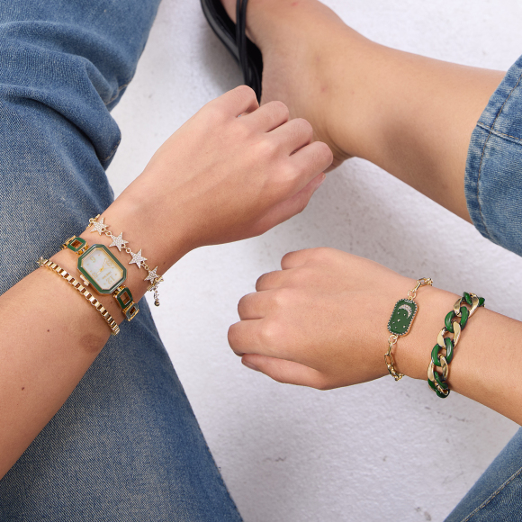 手链表轻奢小众设计ins风复古简约气质森系切面玻璃手表女W80323L绿色
